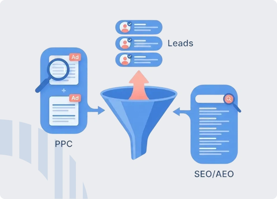 Brand strategy, lead generation, email marketing, website development, conversion optimisation, LinkedIn growth, visual systems - all under one roof. No handoff friction or ginger-pointing between agencies.